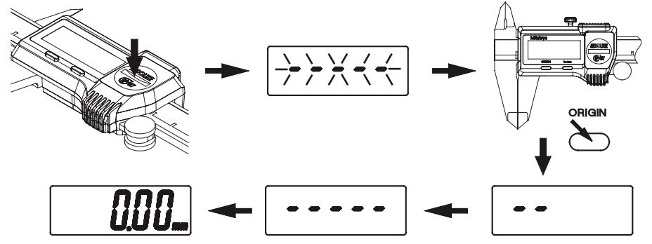 日本三豐設(shè)備的數(shù)顯卡尺安裝電池后,顯示器會(huì)出現(xiàn)如下圖"-----"閃爍,這個(gè)是需要進(jìn)行ORIGIN(原點(diǎn))設(shè)置。